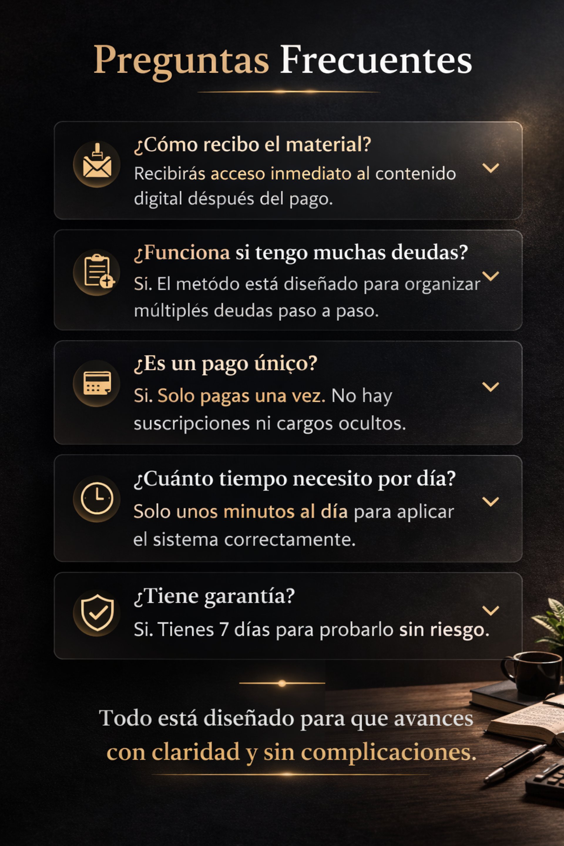 Este producto ofrece estrategias de organización financiera.